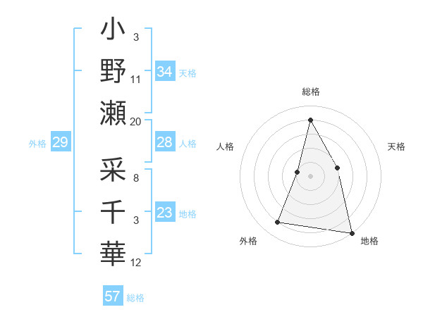 小野瀬 采千華さんの天格は34画の2点!