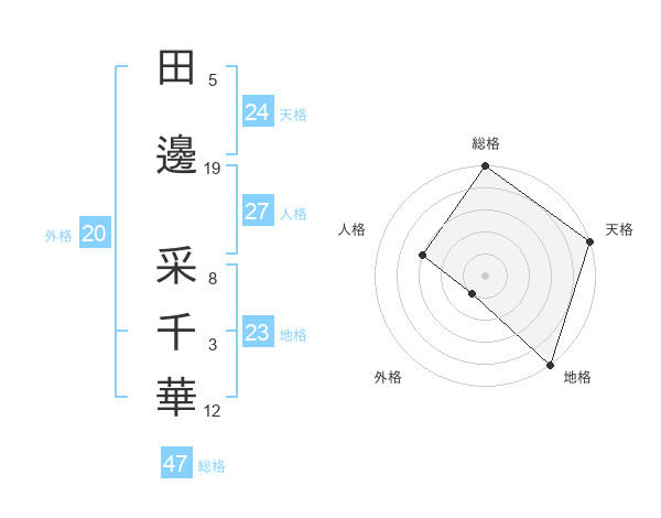 田邊 采千華さんを姓名の画数から五運を鑑定