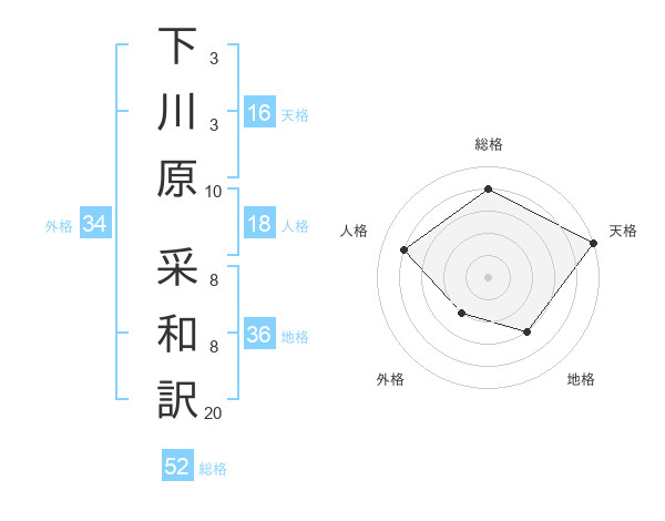 下川原 采和訳さんの総格は52画の4点!
