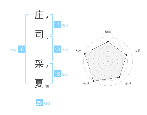 庄司 采夏さんの総格は29画の4点!