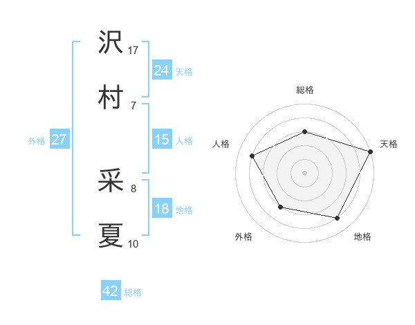 沢村 采夏さんを姓名の画数から五運を鑑定