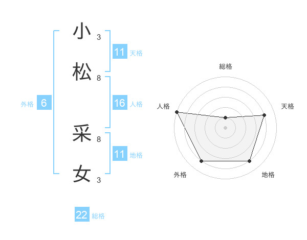 小松 采女さんの総格は22画の1点!