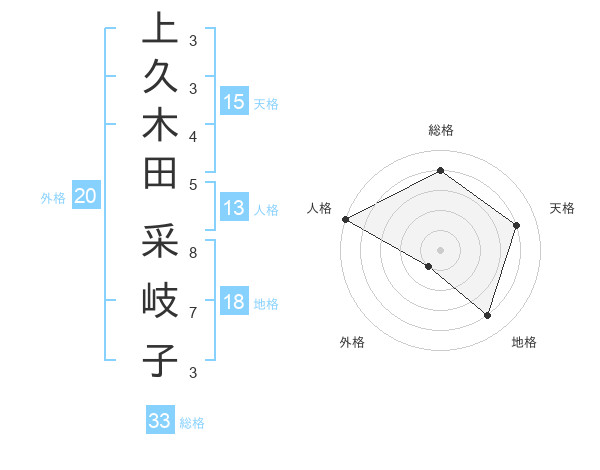 上久木田 采岐子さんの総格は33画の4点