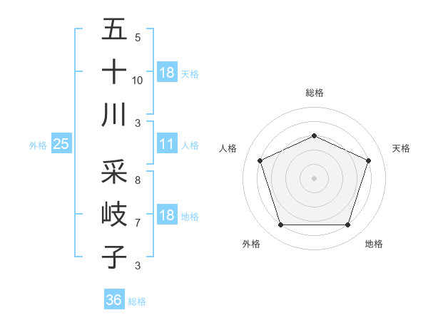 五十川 采岐子さんを姓名の画数から五運を鑑定