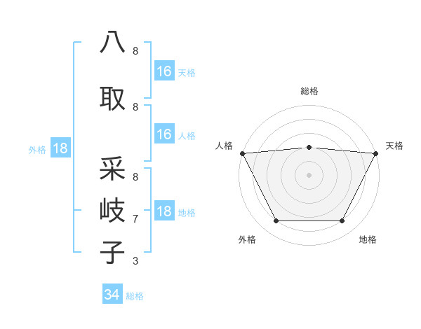 八取 采岐子さんを姓名の画数から五運を鑑定