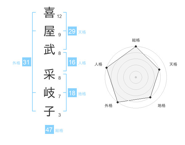 喜屋武 采岐子さんを姓名の画数から五運を鑑定