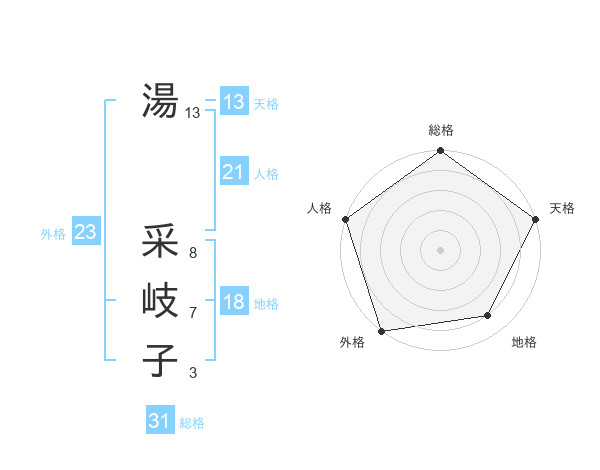 湯 采岐子さんの総格は31画の5点!