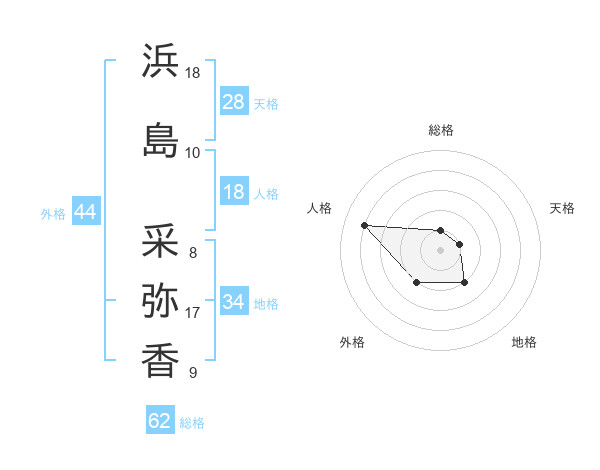 浜島 采弥香さんを姓名の画数から五運を鑑定