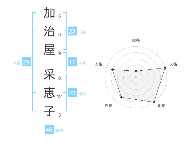 加治屋 采恵子さんの天格は23画の5点