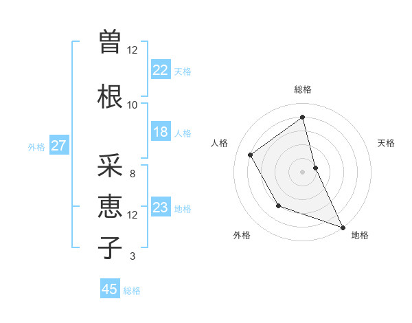 曽根 采恵子さんの総格は45画の4点