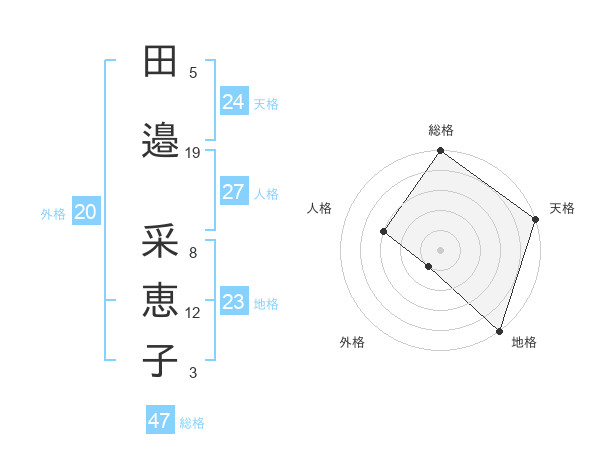 田邉 采恵子さんの総格は47画の5点!