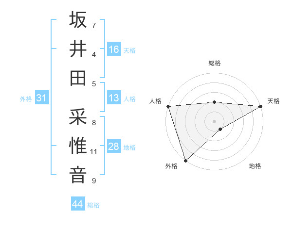 坂井田 采惟音さんを姓名の画数から五運を鑑定
