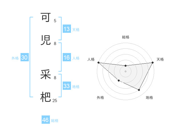 可児 采杷さんの外格は30画の2点!