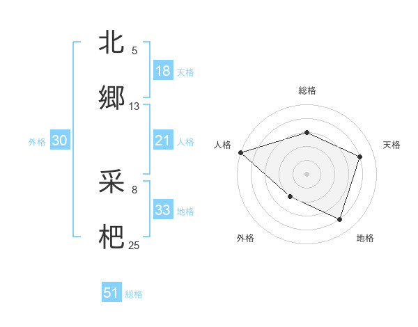 北郷 采杷さんの総格は51画の3点!