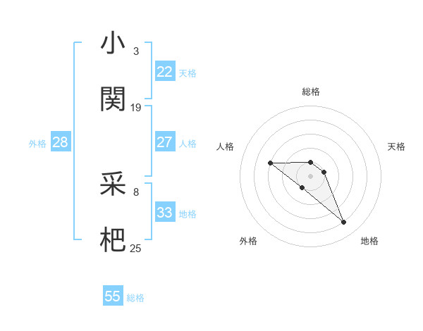 小関 采杷さんの天格は22画の1点