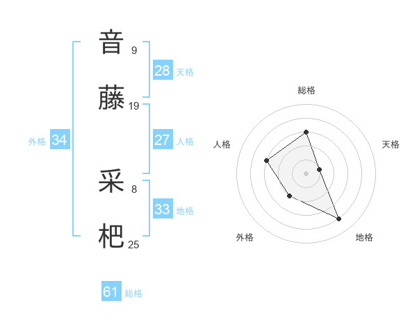 音藤 采杷さんの総格は61画の3点!