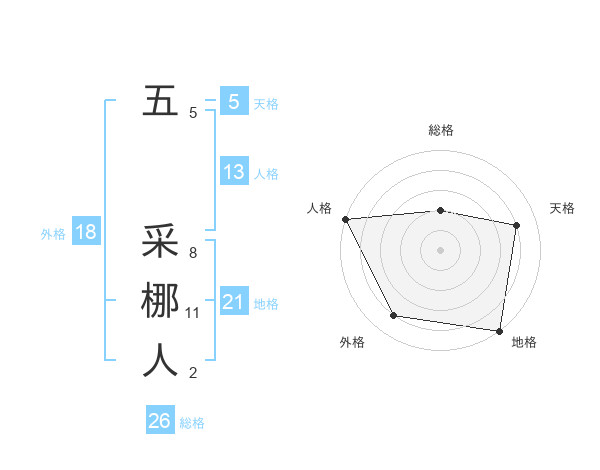 五 采梛人さんの総格は26画の2点!