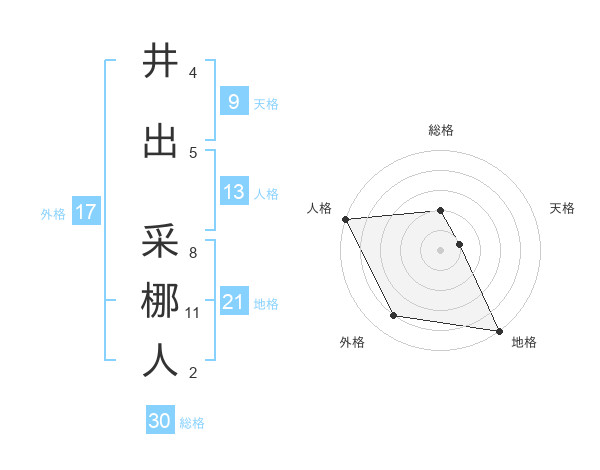 井出 采梛人さんを姓名の画数から五運を鑑定