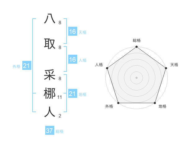 八取 采梛人さんの外格は21画の5点!