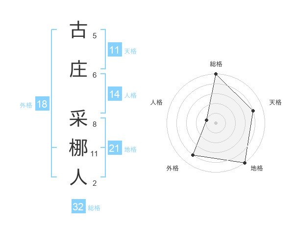 古庄 采梛人さんを姓名の画数から五運を鑑定