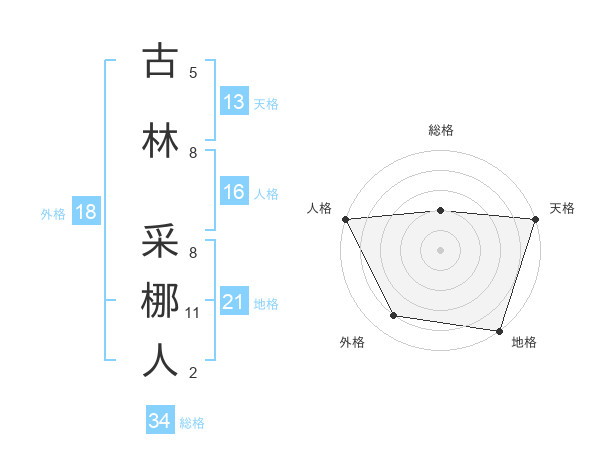 古林 采梛人さんの総格は34画の2点!