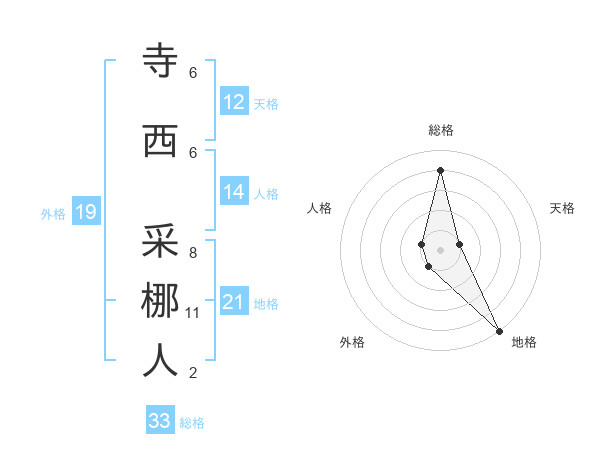 寺西 采梛人さんを姓名の画数から五運を鑑定