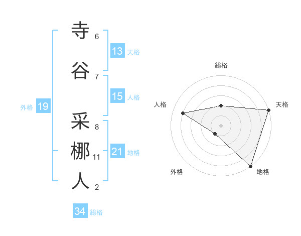 寺谷 采梛人さんを姓名の画数から五運を鑑定