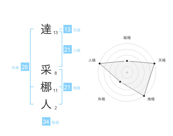 達 采梛人さんの総格は34画の2点!