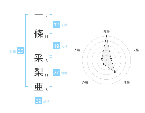 一條 采梨亜さんの総格は39画の5点!