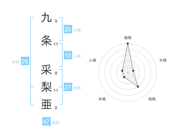 九条 采梨亜さんを姓名の画数から五運を鑑定