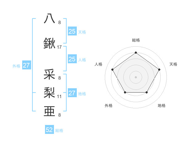八鍬 采梨亜さんの総格は52画の4点!