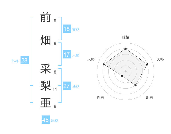 前畑 采梨亜さんの天格は18画の4点!
