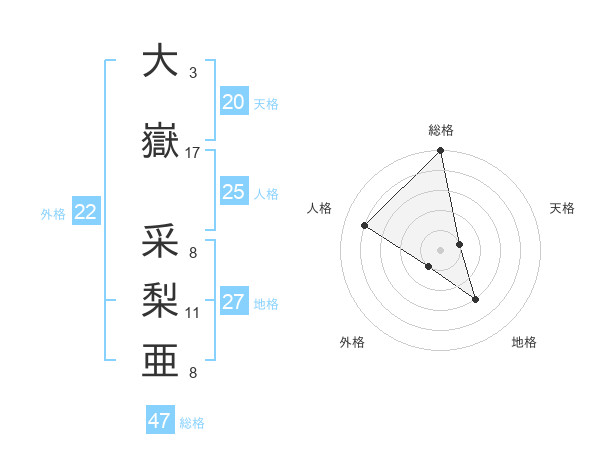 大嶽 采梨亜さんを姓名の画数から五運を鑑定
