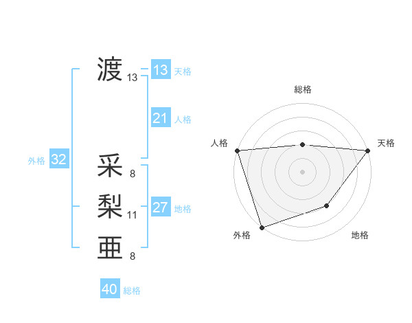 渡 采梨亜さんの外格は32画の5点!
