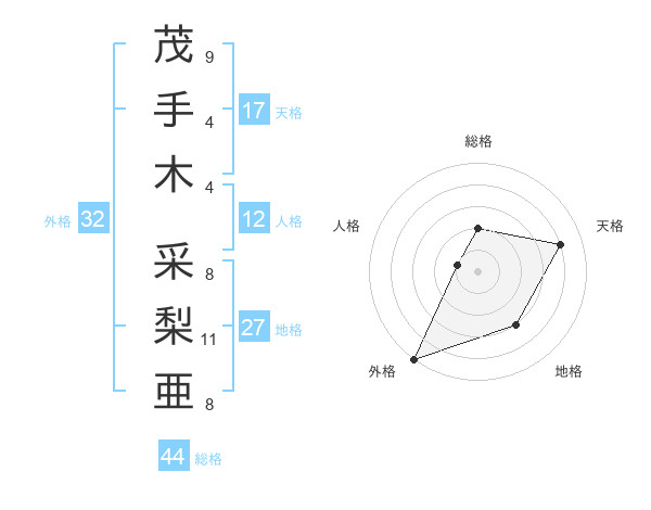 茂手木 采梨亜さんを姓名の画数から五運を鑑定