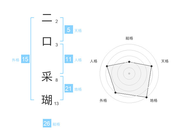 二口 采瑚さんの総格は26画の2点!