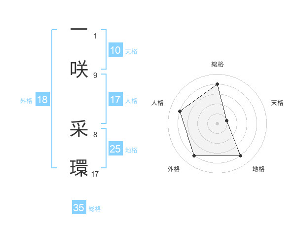 一咲 采環さんの総格は35画の4点!