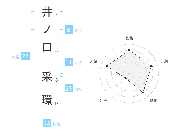 井ノ口 采環さんの総格は33画の4点!