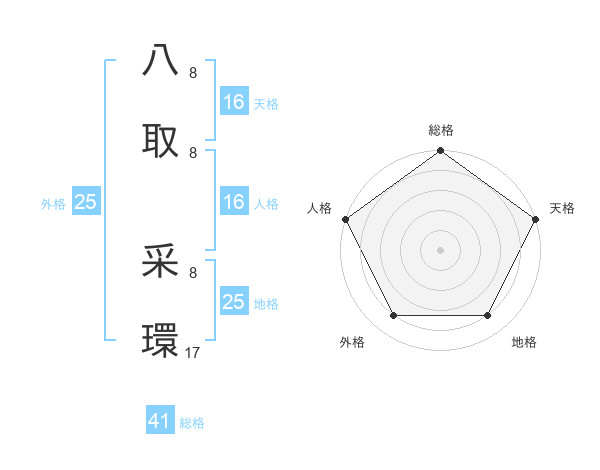 八取 采環さんの総格は41画の5点!
