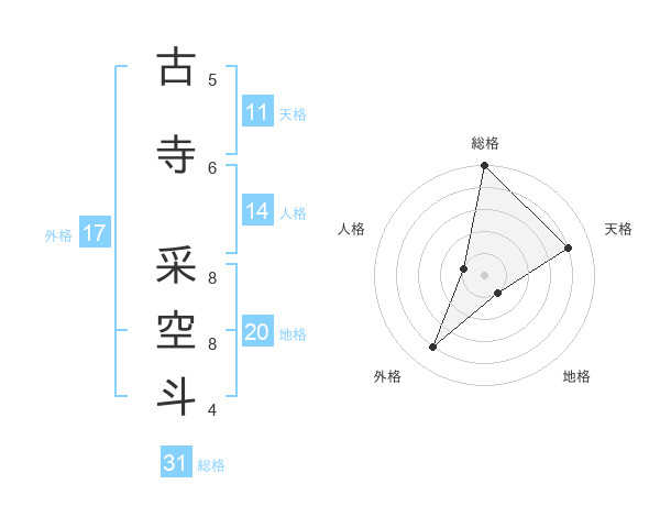 古寺 采空斗さんを姓名の画数から五運を鑑定