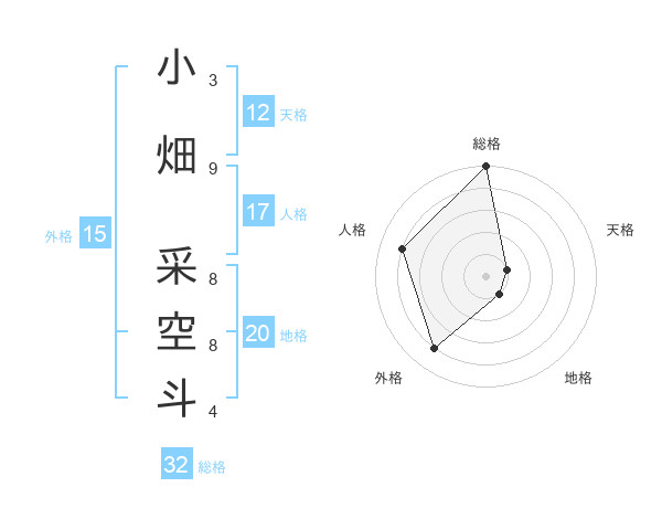 小畑 采空斗さんを姓名の画数から五運を鑑定