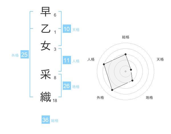 早乙女 采織さんを姓名の画数から五運を鑑定