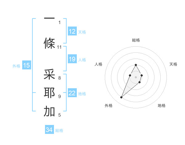 一條 采耶加さんを姓名の画数から五運を鑑定