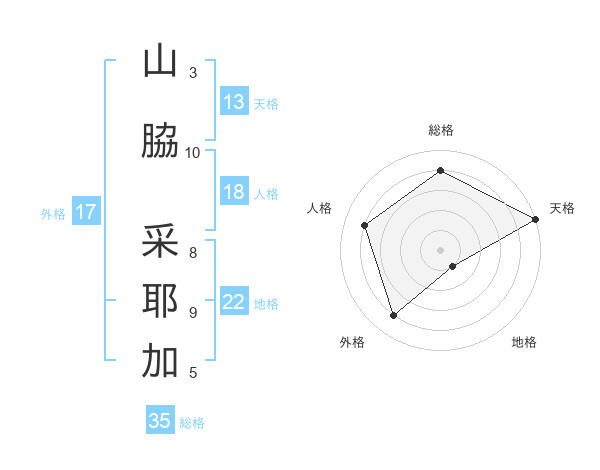 山脇 采耶加さんの天格は13画の5点!