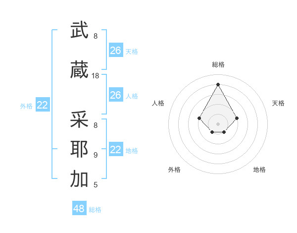 武蔵 采耶加さんの地格は22画の1点!