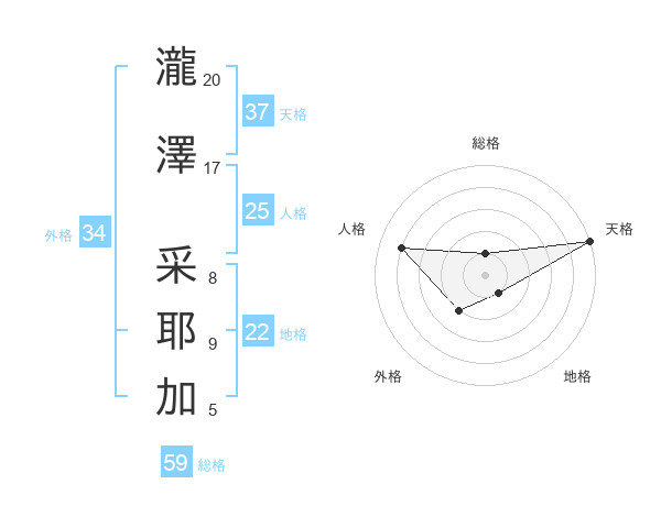 瀧澤 采耶加さんを姓名の画数から五運を鑑定