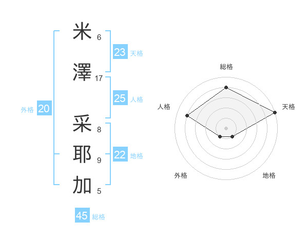 米澤 采耶加さんを姓名の画数から五運を鑑定