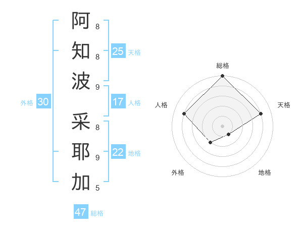 阿知波 采耶加さんの総格は47画の5点!