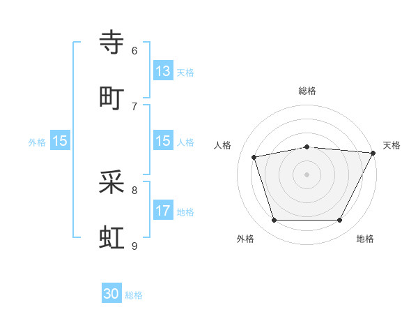 寺町 采虹さんの総格は30画の2点!
