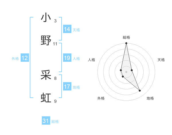 小野 采虹さんの総格は31画の5点!